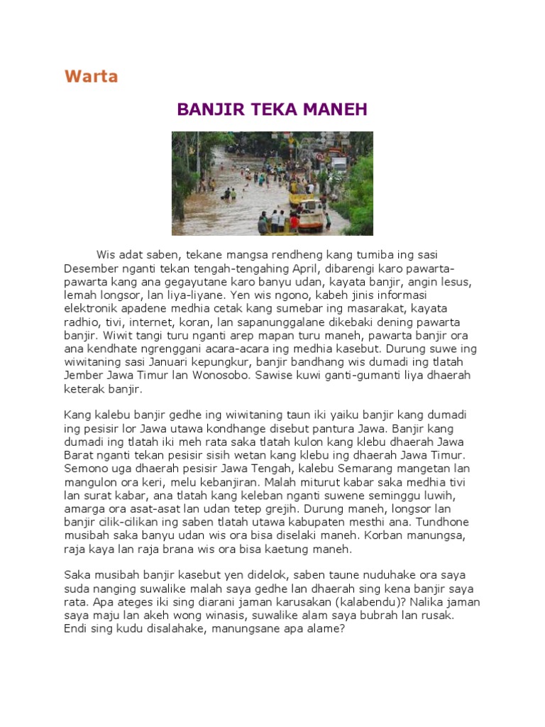 Contoh warta bahasa sunda tentang banjir 5w 1h. Check spelling or type a new query. We did not find results for: Maybe you would like to learn more about one of these?