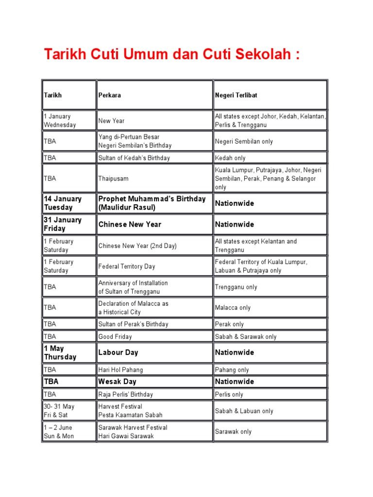 Semua tarikh cuti ini adalah tertakluk kepada perubahan semasa pada tahun 2019 nanti. Tarikh cuti dan penggal persekolahan diumumkan oleh. 0 ratings0% found this document useful (0 votes). Sultan of kelantan's birthday (hari keputeraan sultan kelantan). Cuti sekolah dan cuti perayaan untuk tahun 2020 dah ada.